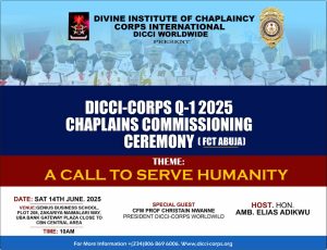 TO RAISE AND ESTABLISH GOD’S EXCEEDING GREAT ARMY BY PLANTING CHAPLAINCY FACULTY IN EVERY CITY OF THE NATIONS.WHO AT HIS VOICE SHALL EXECUTE HIS WORD AND ESTABLISH HIS KINGDOM ON EARTH.